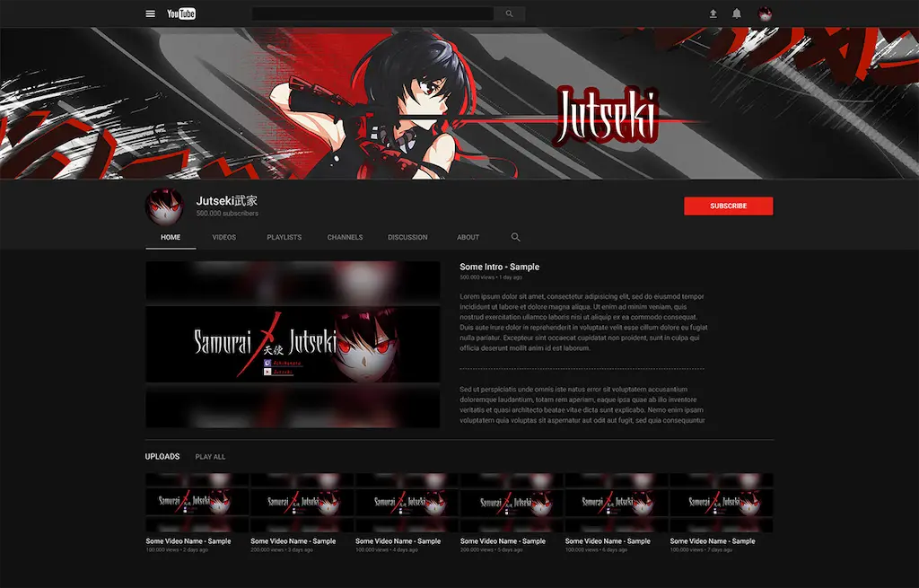 A refreshed banner system for Jutseki, redesigned from an outdated and inconsistent original layout. The new Akame-themed set brings clean typography, balanced focal framing, and platform-safe crops for both web and YouTube. Each variant was rebuilt from scratch with high-detail gradients, sharper tonal control, and a cohesive export kit to keep the creator’s branding consistent across surfaces.